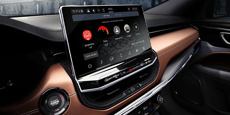 A dedicated front passenger screen offers easy access to navigation, which can be sent to the driver screen. The Jeep Uconnect system offers a 10.1-inch touchscreen in the center console, which is now offered standard in many packages. User profiles allow for easy access to the settings each driver prefers, and it connects easily to your smartphone.