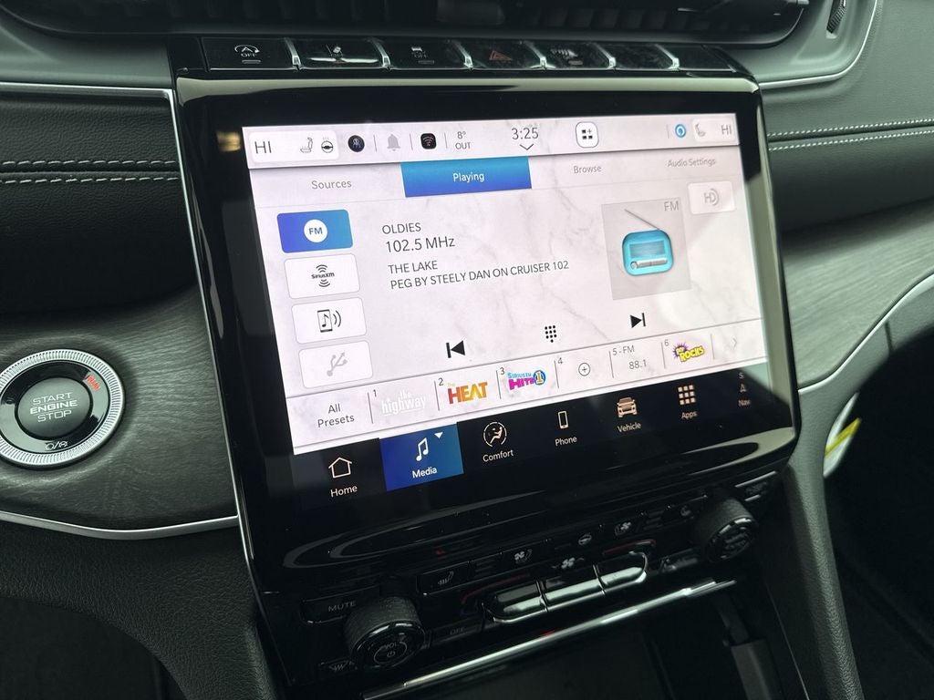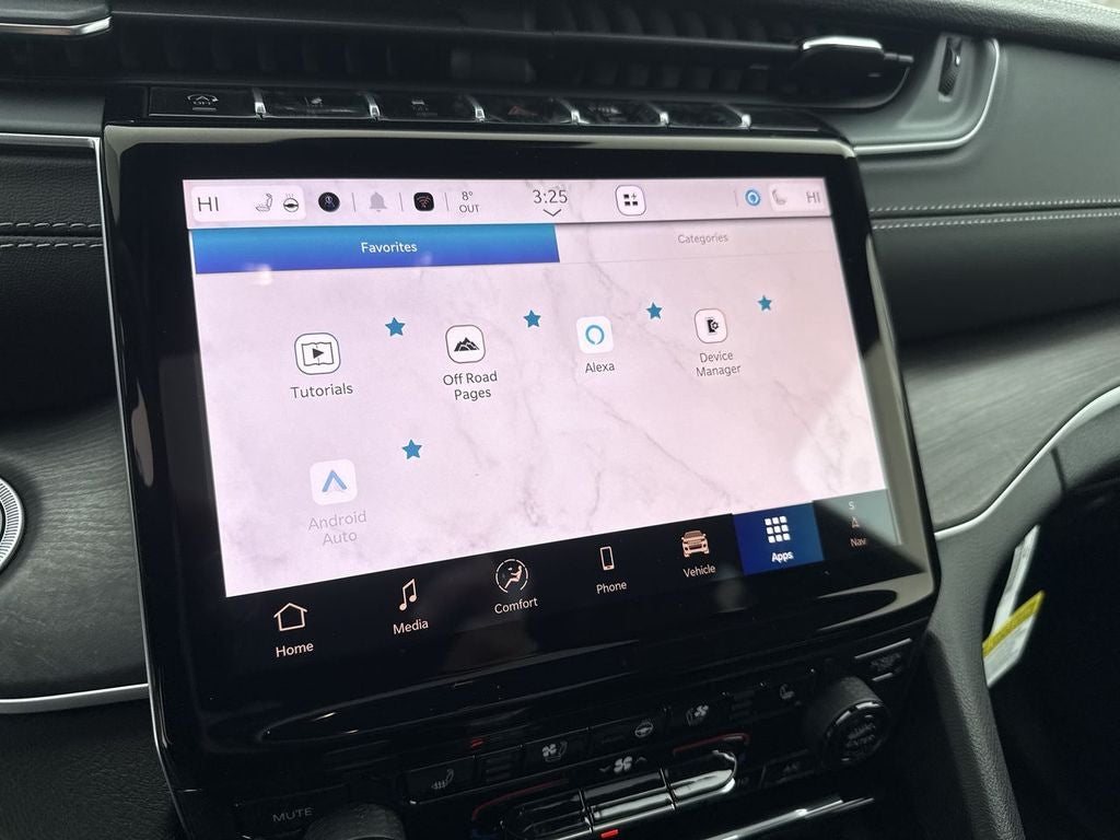 Black Appearance Package: 265/50R20 A/S Performance Tires; 20" X 8.5" Gloss Black Painted Aluminum Wheels; Gloss Black Exterior Accents. Luxury Tech Group II: Power Tilt/telescope Steering Column; Integrated Off-Road Camera; Surround View Camera System; Rain Sensitive Windshield Wipers; ParkSense Front/rear Park Assist with Stop; Front/rear Doors and Liftgate with Passive Entry; Wireless Charging Pad; Rear Back-Up Camera Washer; Ventilated Front Seats; Auto Dim Exterior Driver Mirror; Capri Leatherette with Axis II Seats; 2nd-Row Manual Window Shades; Intersection Collision Assist System; Rearview Autodim Digital Display Mirror; Memory Steering Column. Quick Order Package 22E. Trailer Tow Package: Rear Load Levelling Suspension; Full-Size Spare Tire; 7 and 4-Pin Wiring Harness; Heavy-Duty Engine Cooling; 18" Full-Size Steel Spare Wheel; Automatic Headlamp Levelling System; Trailer Hitch Zoom; 220 Amp Alternator; Class IV Receiver Hitch. MOPAR Finishing Package: MOPAR Rear Splash Guards with Jeep Logo; MOPAR Paint Protection Film; MOPAR Front Splash Guards. Dual-Pane Panoramic Sunroof. **Equipment listed is based on original vehicle build and subject to change. Please confirm the accuracy of the included equipment by calling the dealer prior to purchase.**
