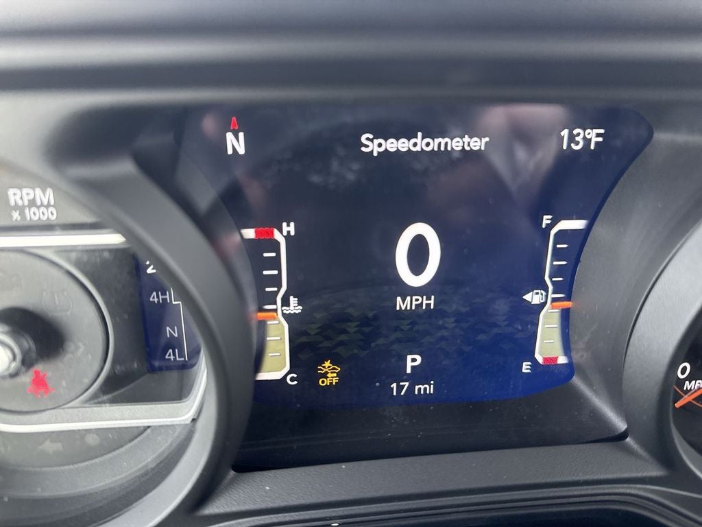 Convenience Group: Emergency/Assistance Call; Front Door Locks 2-Door Passive Entry; Remote Start System; Body Color Fender Flares (2-Piece); Cluster 7.0" TFT Color Display; Universal Garage Door Opener; Daytime Running Lamp System; Heated Front Seats; Air Conditioning W/Auto Temp Control; Heated Steering Wheel; Corning Gorilla Glass. Quick Order Package 24W Willys: LED Taillamps; Protection Sill Rails; 4-Wheel Drive Decal; Black Grille W/Gloss Black Rings; MOPAR All-Weather Slush Mats; LT255/75R17C OWL On/Off Road Tires; Body Color Fender Flares (2-Piece); Front Heavy Duty Red Accent Shock Absorbers; Daytime Running Lamps LED Accents; Front LED Fog Lamps; LED Premium Reflector Headlamps; E-Locker Rear Axle; Corning Gorilla Glass; Trailer Hitch Zoom; Class IV Receiver Hitch; Security Alarm; Mold In Color Bumper W/Gloss Black; Advanced Brake Assist; Willys Suspension; Heavy Duty Engine Cooling; Automatic Headlamps; Air Conditioning W/Auto Temp Control; 5. 950 lbs GVWR; Deep Tint Sunscreen Windows; Off-Road Plus Mode; 17" X 7.5" Painted Black Wheels; Willys Hood Decal; Full Speed Forward Collision Warning Plus; Rear Heavy Duty Red Accent Shock Absorbers; Front Door Locks 2-Door Passive Entry; Cluster 7.0" TFT Color Display; Power Heated Mirrors; Auxiliary Switches; Premium Wrapped Steering Wheel; Sun Visors W/Illuminated Vanity Mirrors. Black 3-Piece Hard Top. MOPAR Spray In Bedliner. **Equipment listed is based on original vehicle build and subject to change. Please confirm the accuracy of the included equipment by calling the dealer prior to purchase.**
