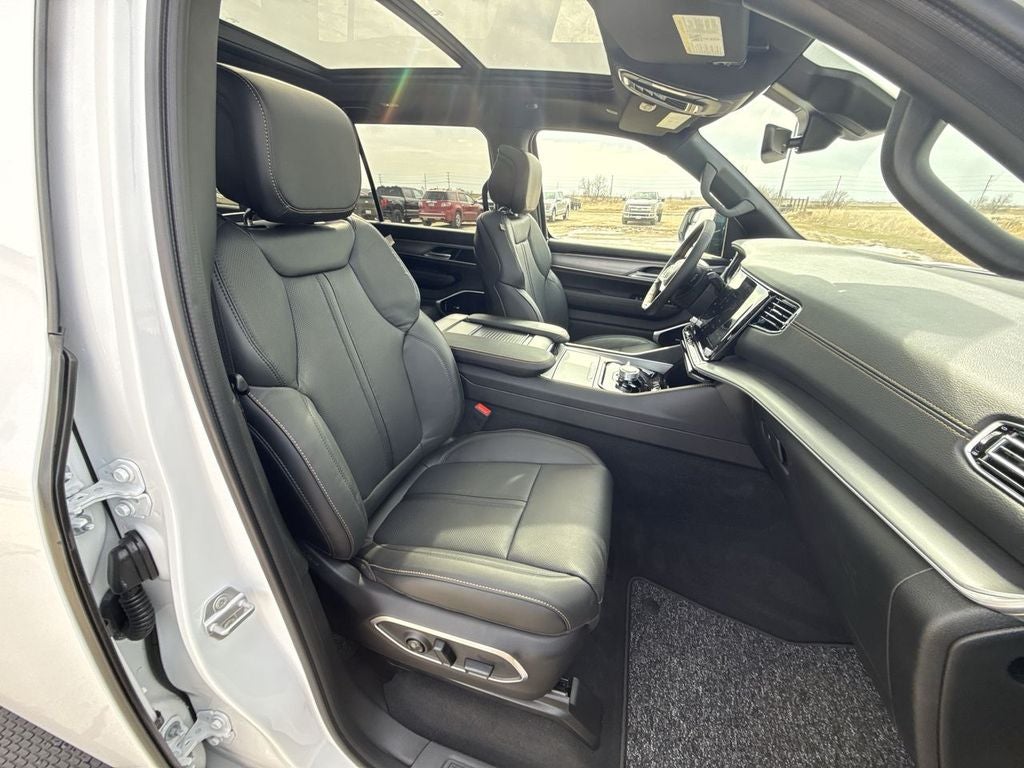 The leather seats in this 2026 Jeep Grand Wagoneer L are a must for buyers looking for comfort, durability, and style. You'll never again be lost in a crowded city or a country region with the navigation system on the Jeep Grand Wagoneer L. This Jeep Grand Wagoneer L features a hands-free Bluetooth® phone system. The Jeep Grand Wagoneer L is pure luxury with a heated steering wheel. Protect this model from unwanted accidents with a cutting edge backup camera system. This unit's Forward Collision Warning system alerts the driver to potential front-end collisions, enhancing safety. This 1/2 ton suv offers Apple CarPlay for seamless connectivity. This Jeep Grand Wagoneer L comes equipped with Android Auto for seamless smartphone integration on the road. This vehicle has auto-adjust speed for safe following. Start it from inside with remote start. When you encounter slick or muddy roads, you can engage the four wheel drive on this model and drive with confidence.