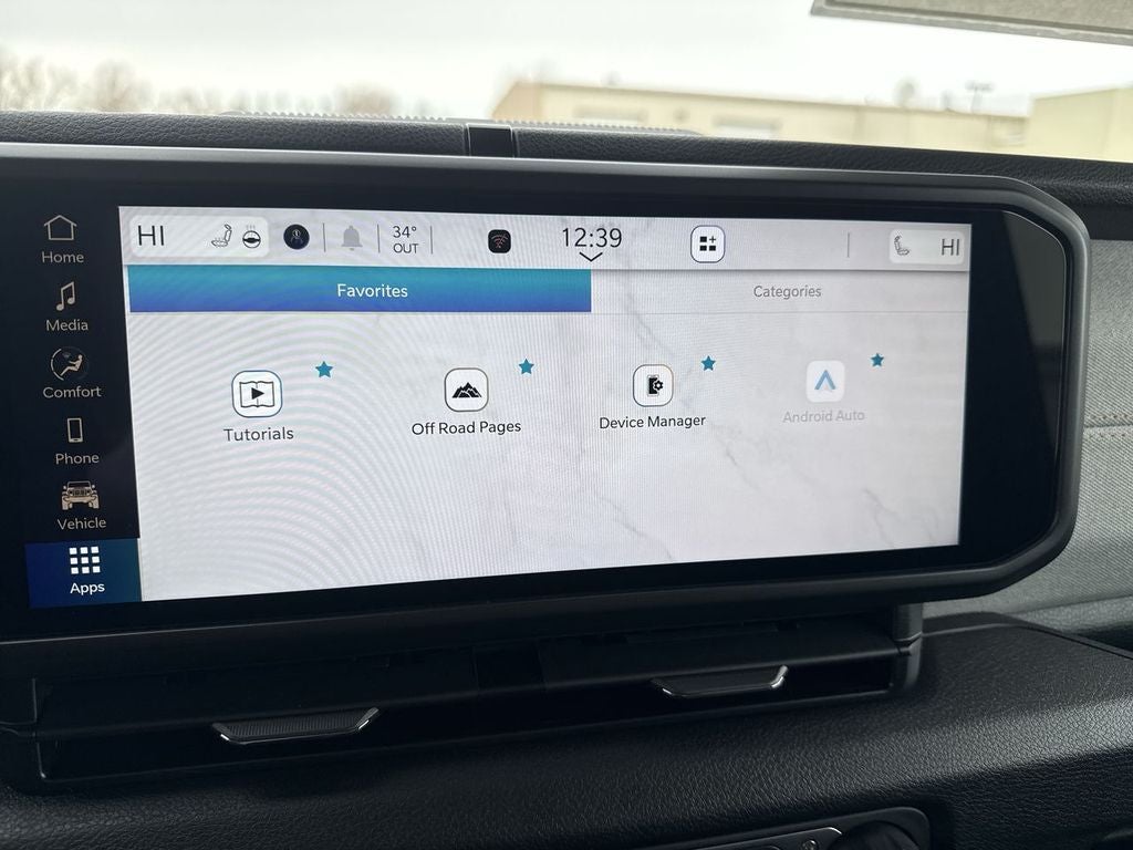 Convenience Group: Emergency/Assistance Call; 2-Door Passive Entry. Front Door Locks; Remote Start System; Cluster 7.0" TFT Color Display; Universal Garage Door Opener; Heated Front Seats; Air Conditioning W/Auto Temp Control; Heated Steering Wheel; Air Filtering. Quick Order Package 24W Willys: 7 & 4 Pin Wiring Harness; Conventional Differential Front Axle; 4-Wheel Drive Swing Gate Decal; Black Grille W/Gloss Black Rings; MOPAR All-Weather Floor Mats; Injection Molded Black Rear Bumper; Dana M210 Wide HD Tube Front Axle; Daytime Running Lamps LED Accents; Front LED Fog Lamps; LED Premium Reflector Headlamps; E-Locker Rear Axle; Corning Gorilla Glass; Security Alarm; 4.10 Rear Axle Ratio; 5. 675 lbs GVWR; Class II Receiver Hitch; Mold In Color Bumper W/Gloss Black; Advanced Brake Assist; Willy's Suspension; LT285/70R17C BSW Mud Terrain Tires; Automatic Headlamps; Deep Tint Sunscreen Windows; Off-Road Plus Mode; 17" X 7.5" Painted Black Wheels; Willys Hood Decal; Full Speed Forward Collision Warning Plus; Rock Protection Sill Rails; Power Heated Mirrors; Enhanced Adaptive Cruise Control; Auxiliary Switches; Dana M220 Wide Rear Axle; Molded in Color Rubicon Highline Flare; Premium Wrapped Steering Wheel; Sun Visors W/Illuminated Vanity Mirrors. Trailer Tow & Aux Switch Group (DISC): Class II Receiver Hitch; 7 & 4 Pin Wiring Harness; Auxiliary Switches. Steel Power Dome Hood Package: Power Dome Dual Vented Hood. Quick Order Package 23W Willys: 7 & 4 Pin Wiring Harness; Conventional Differential Front Axle; 4-Wheel Drive Swing Gate Decal; Black Grille W/Gloss Black Rings; MOPAR All-Weather Floor Mats; Injection Molded Black Rear Bumper; Dana M210 Wide HD Tube Front Axle; Daytime Running Lamps LED Accents; Front LED Fog Lamps; LED Premium Reflector Headlamps; E-Locker Rear Axle; Corning Gorilla Glass; Security Alarm; 4.10 Rear Axle Ratio; 5. 675 lbs GVWR; Class II Receiver Hitch; Mold In Color Bumper W/Gloss Black; Advanced Brake Assist; Willy's Suspension; LT285/70R17C BSW Mud Terrain Tires; Automatic Headlamps; Deep Tint Sunscreen Windows; Off-Road Plus Mode; 17" X 7.5" Painted Black Wheels; Willys Hood Decal; Full Speed Forward Collision Warning Plus; Rock Protection Sill Rails; Power Heated Mirrors; Enhanced Adaptive Cruise Control; Auxiliary Switches; Dana M220 Wide Rear Axle; Molded in Color Rubicon Highline Flare; Premium Wrapped Steering Wheel; Sun Visors W/Illuminated Vanity Mirrors. Black MOPAR Perforated Leather. Black 3-Piece Hard Top. 41. **Equipment listed is based on original vehicle build and subject to change. Please confirm the accuracy of the included equipment by calling the dealer prior to purchase.**