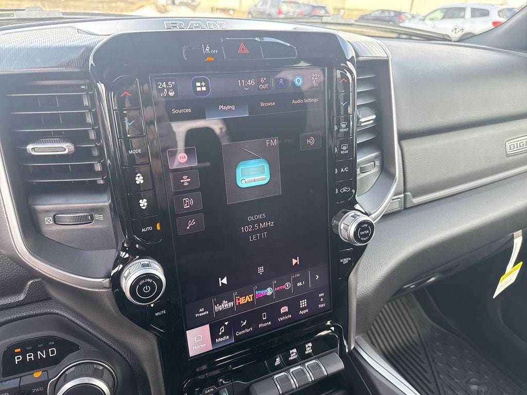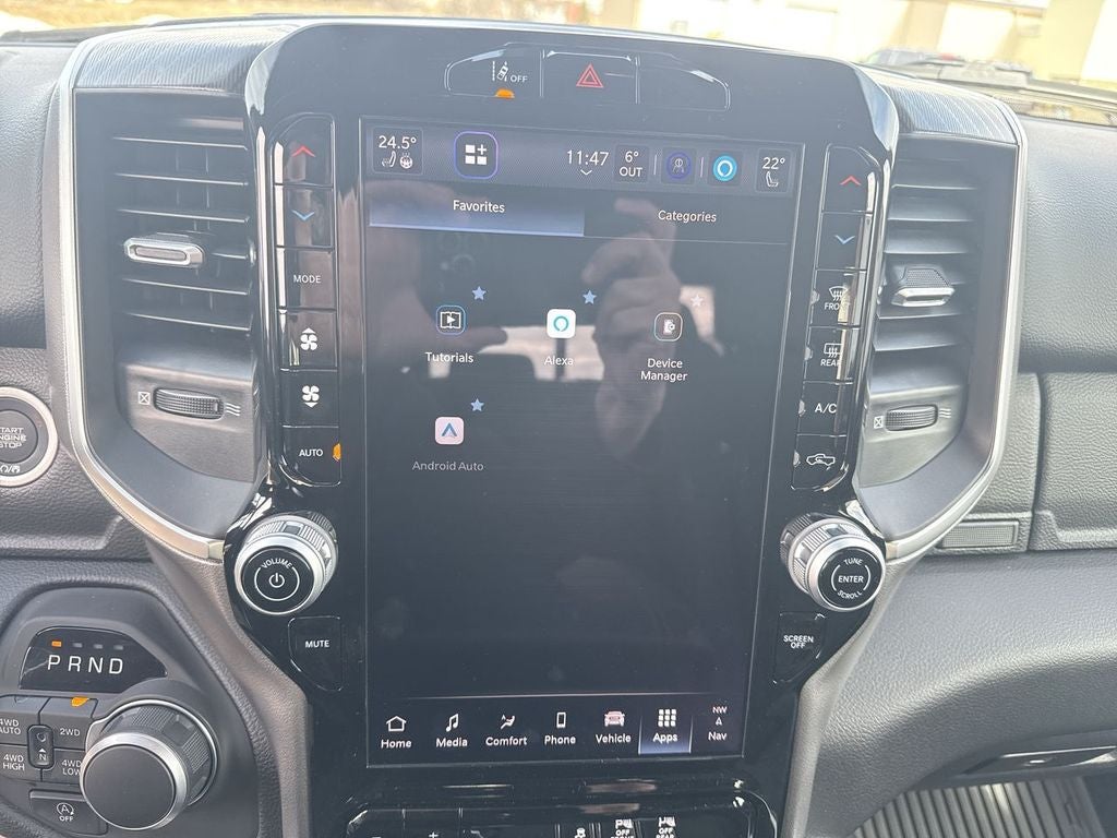 Quick Order Package 27Z Big Horn. Big Horn Level 2 Equipment Group: Google Android Auto; SiriusXM Radio Service; USB Host Flip; Power Adjustable Pedals; Leather Wrapped Steering Wheel; Integrated Voice Command with Bluetooth®; 12" Touchscreen Display; Glove Box Lamp; Auto Power-Folding Mirrors; 115V Auxiliary Rear Power Outlet; Media Hub with 2 Charge Only USBs; Heated Front Seats; Security Alarm; Black Premium Power Mirrors; Apple CarPlay; Premium Overhead Console; 9 Amplified Speakers with Subwoofer; Disassociated Touchscreen Display; Body Color Fender Flares; Remote Tailgate Release; 115V Auxiliary Power Outlet; LED Dome Lamp with On/off Switch; Universal Garage Door Opener; 2nd Row in Floor Storage Bins; Sun Visors with Illuminated Vanity Mirrors; LED Footwell Lighting; Rear Window Defroster; Integrated Center Stack Radio; Rear View Auto Dim Mirror; Rear Power Sliding Window; Connectivity - US/Canada; GPS Navigation; 4G LTE Wi-Fi Hot Spot; GPS Antenna Input; Overhead LED Lamps; Exterior Mirrors with Heating Element; Auto Dim Exterior Driver Mirror; SiriusXM with 360L; Global Telematics Box Module; Connected Travel and Traffic Services; Heated Steering Wheel; Configurable Drive Mode; 400W Inverter; HD Radio; Deluxe Cloth Bucket Seats; Uconnect 5 Navigation with 12.0" Display Radio; Exterior Mirrors with Supplemental Signals; Steering Wheel Mounted Audio Controls; Exterior Mirrors Courtesy Lamps; Air Conditioning ATC with Dual Zone Control; Cluster 7.0" TFT Color Display; Convex Wide-Angle Exterior Mirror Insert. Night Edition: 275/55R20 OWL All Season Tires; Accent Color Premium Power Mirrors; Exterior Mirrors with Supplemental Signals; Black Headlamp Bezels; Exterior Mirrors Courtesy Lamps; Grille Black Surround Black Mesh; Auto Power-Folding Mirrors; Exterior Mirrors with Heating Element; 20" X 9.0" Aluminum Painted Clad Wheels; Auto Dim Exterior Driver Mirror; Black Exterior Truck Badging; Anti-Spin Differential Rear Axle; Accent Color Door Handles; Accent Color Tailgate Handle; Black Interior Accents; Dual Exhaust with Black Tips; Body Color Front Bumper; Convex Wide-Angle Exterior Mirror Insert; Body Color Rear Bumper with Step Pads; Black Tail Lamp Bezels; RAM Grille Badge - Black; Black Painted Exterior Mirrors Caps. Quick Order Package 23Z Big Horn. 9 Amplified Speakers with Subwoofer. Anti-Spin Differential Rear Axle. 33 Gallon Fuel Tank. Trailer Brake Control. Forged Blue Metallic. MOPAR Front and Rear Rubber Floor Mats. 3.92 Rear Axle Ratio. Rear Wheelhouse Liners. **Equipment listed is based on original vehicle build and subject to change. Please confirm the accuracy of the included equipment by calling the dealer prior to purchase.**
