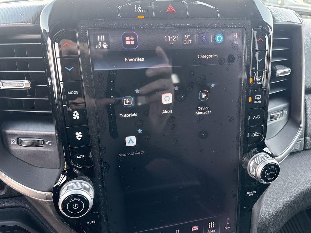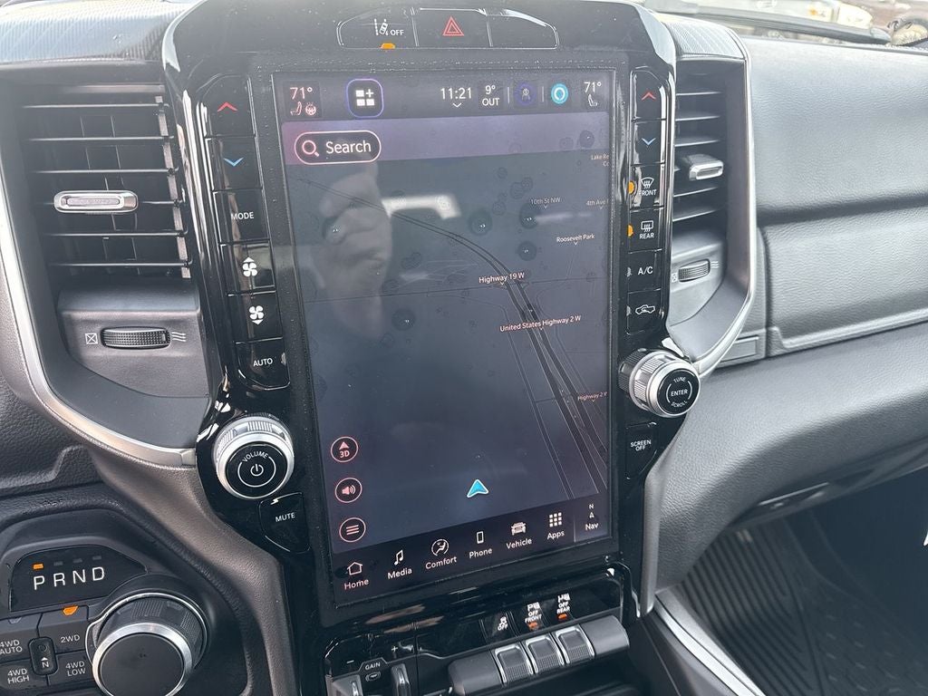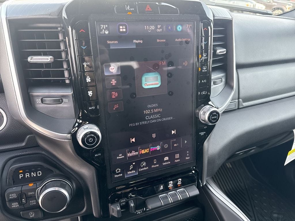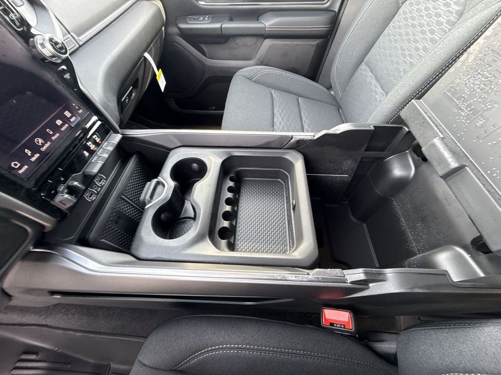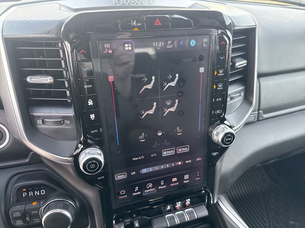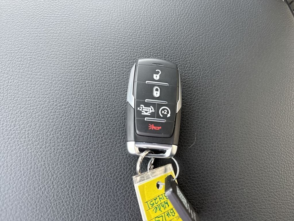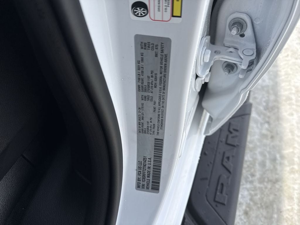 Quick Order Package 27Z Big Horn. Big Horn Level 2 Equipment Group: Google Android Auto; SiriusXM Radio Service; USB Host Flip; Power Adjustable Pedals; Leather Wrapped Steering Wheel; Integrated Voice Command with Bluetooth®; 12" Touchscreen Display; Glove Box Lamp; Auto Power-Folding Mirrors; 115V Auxiliary Rear Power Outlet; Media Hub with 2 Charge Only USBs; Heated Front Seats; Security Alarm; Black Premium Power Mirrors; Apple CarPlay; Premium Overhead Console; 9 Amplified Speakers with Subwoofer; Disassociated Touchscreen Display; Body Color Fender Flares; Remote Tailgate Release; 115V Auxiliary Power Outlet; LED Dome Lamp with On/off Switch; Universal Garage Door Opener; 2nd Row in Floor Storage Bins; Sun Visors with Illuminated Vanity Mirrors; LED Footwell Lighting; Rear Window Defroster; Integrated Center Stack Radio; Rear View Auto Dim Mirror; Rear Power Sliding Window; Connectivity - US/Canada; GPS Navigation; 4G LTE Wi-Fi Hot Spot; GPS Antenna Input; Overhead LED Lamps; Exterior Mirrors with Heating Element; Auto Dim Exterior Driver Mirror; SiriusXM with 360L; Global Telematics Box Module; Connected Travel and Traffic Services; Heated Steering Wheel; Configurable Drive Mode; 400W Inverter; HD Radio; Deluxe Cloth Bucket Seats; Uconnect 5 Navigation with 12.0" Display Radio; Exterior Mirrors with Supplemental Signals; Steering Wheel Mounted Audio Controls; Exterior Mirrors Courtesy Lamps; Air Conditioning ATC with Dual Zone Control; Cluster 7.0" TFT Color Display; Convex Wide-Angle Exterior Mirror Insert. Night Edition: 275/55R20 OWL All Season Tires; Accent Color Premium Power Mirrors; Exterior Mirrors with Supplemental Signals; Black Headlamp Bezels; Exterior Mirrors Courtesy Lamps; Grille Black Surround Black Mesh; Auto Power-Folding Mirrors; Exterior Mirrors with Heating Element; 20" X 9.0" Aluminum Painted Clad Wheels; Auto Dim Exterior Driver Mirror; Black Exterior Truck Badging; Anti-Spin Differential Rear Axle; Accent Color Door Handles; Accent Color Tailgate Handle; Black Interior Accents; Dual Exhaust with Black Tips; Body Color Front Bumper; Convex Wide-Angle Exterior Mirror Insert; Body Color Rear Bumper with Step Pads; Black Tail Lamp Bezels; RAM Grille Badge - Black; Black Painted Exterior Mirrors Caps. Quick Order Package 23Z Big Horn. RamBox Cargo Management System. 9 Amplified Speakers with Subwoofer. MOPAR Black Tubular Side Steps. Anti-Spin Differential Rear Axle. Trailer Brake Control. Cluster 12" TFT Color Display. MOPAR Front and Rear Rubber Floor Mats. 3.92 Rear Axle Ratio. Rear Wheelhouse Liners. **Equipment listed is based on original vehicle build and subject to change. Please confirm the accuracy of the included equipment by calling the dealer prior to purchase.**