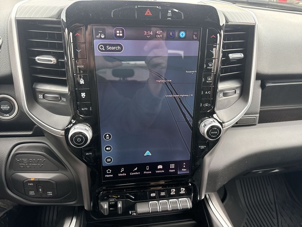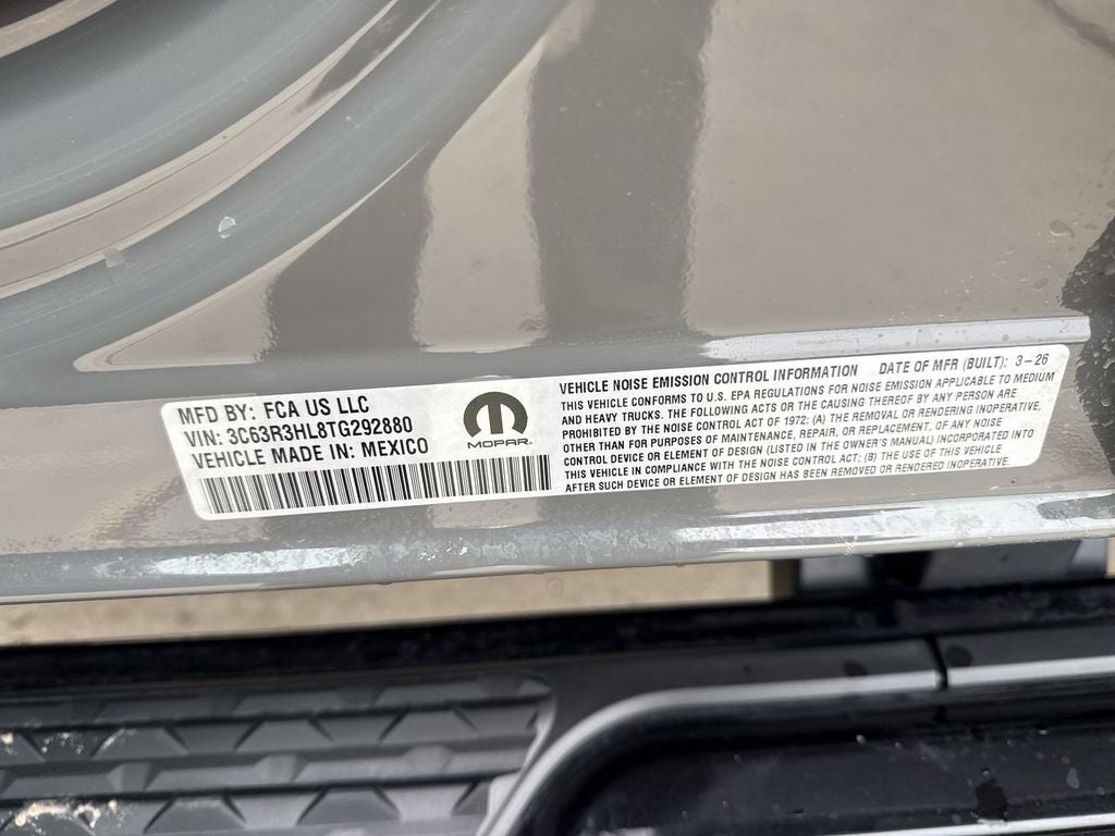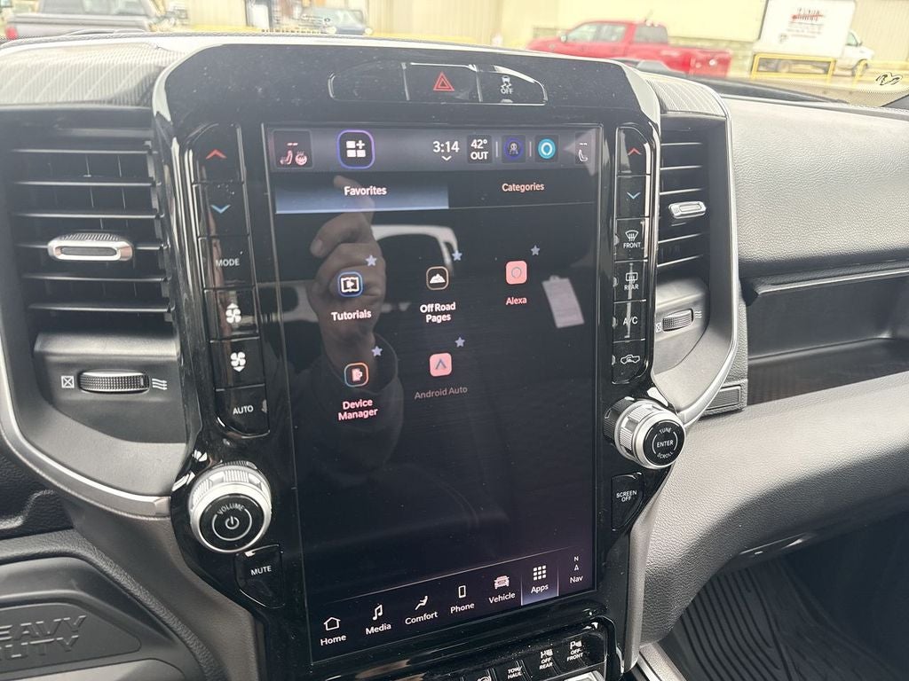 Quick Order Package 24Z Big Horn. Cold Weather Group: Engine Block Heater; MOPAR Winter Front Grille Cover. Night Edition: Firestone Brand Tires; Gloss Black Nostrils/molded in Color Black Grille; LT285/60R20E OWL On/off Road Tires; Black Exterior Truck Badging; 20" X 8.0" Black Painted Aluminum Wheels; Body Color Grille Surround; Black Interior Accents; Black Wheel Center Hub; Painted Front Bumper; Painted Rear Bumper. Big Horn Level 1 Plus Equipment Group: Google Android Auto; SiriusXM Radio Service; For Details Visit DriveUconnect.com; For More Info. Call 800-643-2112; Integrated Voice Command with Bluetooth®; Emergency Vehicle Alert System (EVAS); 12" Touchscreen Display; Glove Box Lamp; Auto Power-Folding Mirrors; Footwell Courtesy Lamp; Mirror Running Lights; MOPAR Deployable Bed Step; Alexa Built-In; Apple CarPlay; Power-Adjustable Convex Aux Mirrors; Forward and Reverse Utility Lights; Locking Lower Glove Box; Remote Start System; 9 Alpine Speakers with Subwoofer; Disassociated Touchscreen Display; Dual Glove Boxes; 2nd Row in Floor Storage Bins; Rear View Auto Dim Mirror; Rear Dome with On/off Switch Lamp; LED Bed Lighting; Connectivity - US/Canada; GPS Navigation; 4G LTE Wi-Fi Hot Spot; GPS Antenna Input; Exterior Mirrors with Heating Element; SiriusXM with 360L; Global Telematics Box Module; Connected Travel and Traffic Services; Foam Bottle Insert (door Trim Panel); Black Exterior Mirrors; Big Horn Instrument Panel Badge; Off-Road Information Pages; Selectable Tire Fill Alert; Trailer Tow Pages; HD Radio; Uconnect 5 Navigation with 12.0" Display Radio; Power Heated Fold Telescopic Mirrors; Exterior Mirrors with Supplemental Signals; Steering Wheel Mounted Audio Controls; Exterior Mirrors Courtesy Lamps; Air Conditioning ATC with Dual Zone Control; MOPAR Spray in Bedliner; Power Adjust Mirrors; Luxury Steering Wheel; Power Telescoping Mirrors. Heated Seats and Wheel Group: Heated Front Seats; Heated Steering Wheel. Quick Order Package 2UZ Big Horn. Painted Flat Wheel-To-wheel Side Steps. 5th Wheel/gooseneck Towing Prep Group. Premium Cloth Bucket Seats. 50 Gallon Fuel Tank. Remote Start System. MOPAR Front and Rear Rubber Floor Mats. Rear Wheelhouse Liners. Clearance Lamps. Transfer Case Skid Plate Shield. **Equipment listed is based on original vehicle build and subject to change. Please confirm the accuracy of the included equipment by calling the dealer prior to purchase.**
