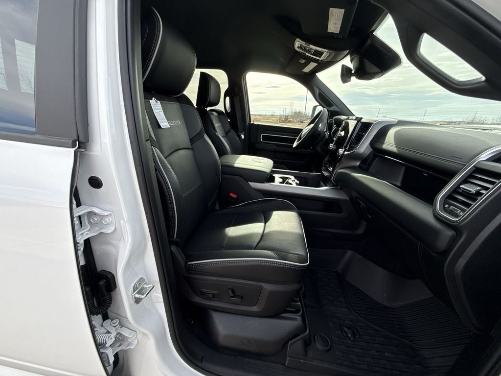 Cold Weather Group: Engine Block Heater; MOPAR Winter Front Grille Cover. Quick Order Package 24H Laramie. Night Edition: Firestone Brand Tires; LT285/60R20E OWL On/off Road Tires; Black Exterior Truck Badging; 20" X 8.0" Black Painted Aluminum Wheels; Gloss Black Grille Billets/accents; Body Color Grille Surround; Sport Performance Hood; Black Exterior Mirrors; Black Wheel Center Hub. Laramie Level 1 Plus Equipment Group: Center Stop Lamp with Cargo View Camera; Rain Sensitive Windshield Wipers; Power Adjustable Pedals with Memory; LED Bed Lighting; Traffic Sign Recognition; Auto Power-Folding Mirrors; Adaptive Steering System; Exterior Mirrors with Heating Element; Auto Dimming Exterior Mirrors; Drowsy Driver Detection; Mirror Running Lights; MOPAR Deployable Bed Step; Foam Bottle Insert (door Trim Panel); Power-Adjustable Convex Aux Mirrors; Active Lane Management System; Forward and Reverse Utility Lights; Leather Trimmed Bucket Seats; Power Heat Fold Memory Telescopic Mirrors; Exterior Mirrors with Supplemental Signals; Exterior Mirrors Courtesy Lamps; MOPAR Spray in Bedliner; Remote Tailgate Release; Auto High Beam Headlamp Control; Chrome Exterior Mirrors; Exterior Mirrors with Memory; Power Adjust Mirrors; 2nd Row in Floor Storage Bins; Power Telescoping Mirrors; Auto Dimming Exterior Passenger Mirror; Auto Adjust in Reverse Exterior Mirrors. Painted Flat Wheel-To-wheel Side Steps. 5th Wheel/gooseneck Towing Prep Group. Leather Trimmed Bucket Seats. Center Stop Lamp with Cargo View Camera. 50 Gallon Fuel Tank. MOPAR Front and Rear Rubber Floor Mats. Clearance Lamps. Transfer Case Skid Plate Shield. **Equipment listed is based on original vehicle build and subject to change. Please confirm the accuracy of the included equipment by calling the dealer prior to purchase.**