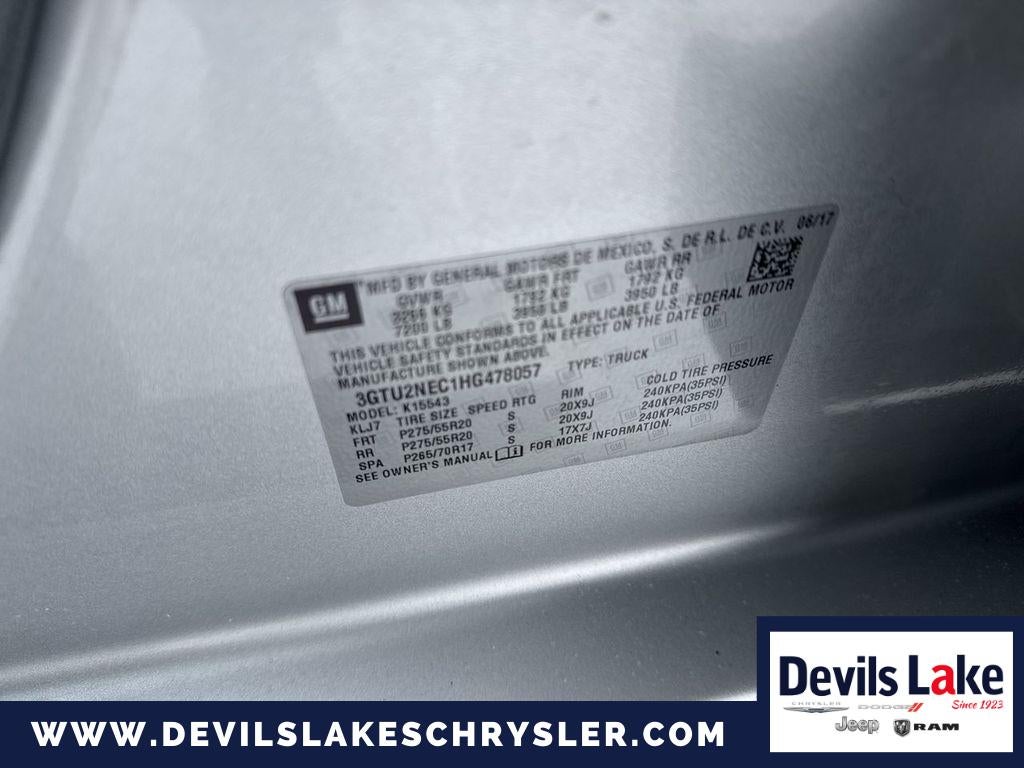 This GMC Sierra 1500 balances rugged capability with refined creature comforts, offering roomy cabin space, durable bed utility, and driver-assist features ideal for work and family use. Priced to sell — we're offering the best price in Devils Lake ND on this well-maintained, CARFAX-verified truck. Financing options and trades welcome. Schedule a test drive today to experience the powerful V8, smooth ride, and premium SLT amenities in person. Contact us now to lock in the best price on this 2017 GMC Sierra 1500 SLT.