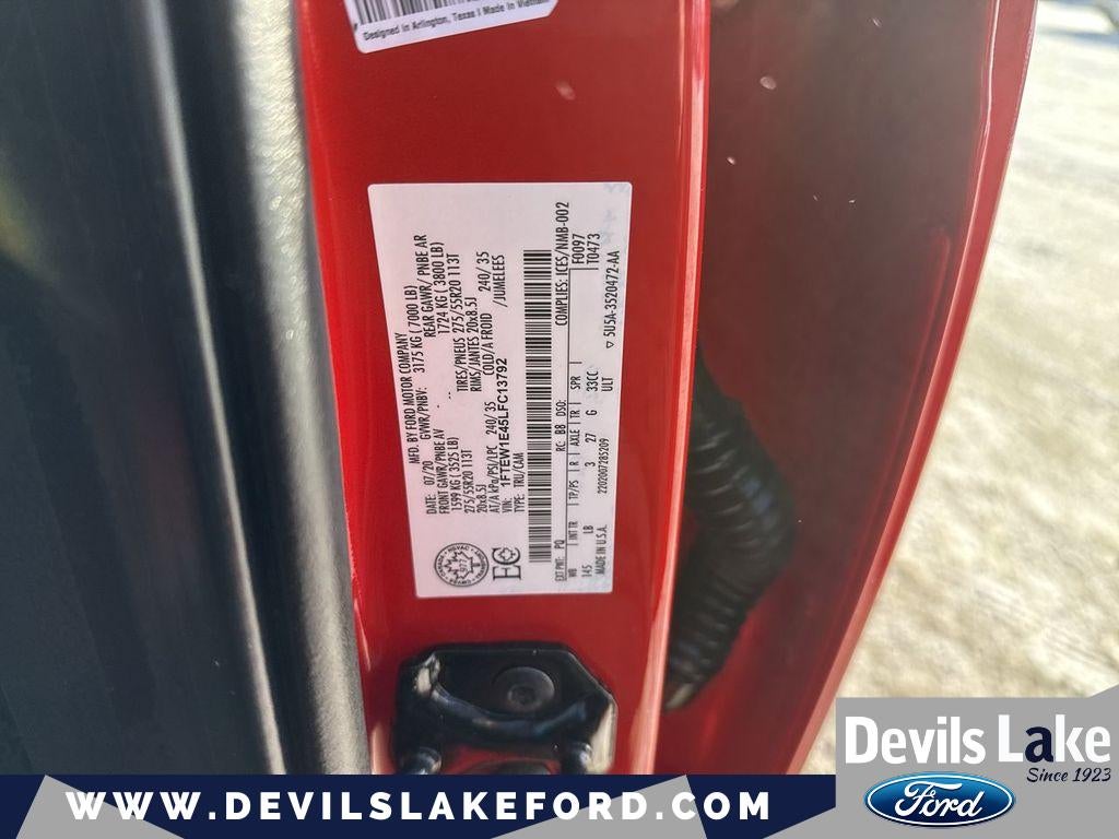 Equipment Group 502A Luxury: Electronic 10-Speed Automatic Transmission; Rain-Sensing Wipers; Power Tilt/telescoping Steering Column with Memory; Windshield Wiper De-Icer; B&O Sound System by Bang and Olufsen; Heated Rear Seats; Voice-Activated Navigation; Universal Garage Door Opener; Heated Steering Wheel; Quad Beam LED Headlamps and LED Fog Lamps. Lariat Special Edition Package: 20" Unique Premium Tarnished Dark Painted Wheels; P275/55R20 BSW AT Tires; 6" Black Running Boards; Unique Bodyside and Hood Decals; Unique Grille with Dark-Foundry Mesh; Unique Special Edition 40/console/40 Front Seats. Lariat Sport Appearance Package: Box Side Decal; Single-Tip Chrome Exhaust; Body-Colour Door Handles with Body-Colour Bezel; 6" Magnetic Running Boards; Body-Colour 2-Bar Style Grille; Body-Colour Front and Rear Bumpers. Lariat Chrome Appearance Package: Single-Tip Chrome Exhaust; Chrome Door Handles with Body-Colour Bezel; Bright Chrome 2-Bar Style Grille; Chrome Skull Caps on Exterior Mirrors. Twin Panel Moonroof. Voice-Activated Navigation. P275/55R20 BSW AT Tires. Tailgate Step with Tailgate Lift Assist. **Equipment listed is based on original vehicle build and subject to change. Please confirm the accuracy of the included equipment by calling the dealer prior to purchase.**