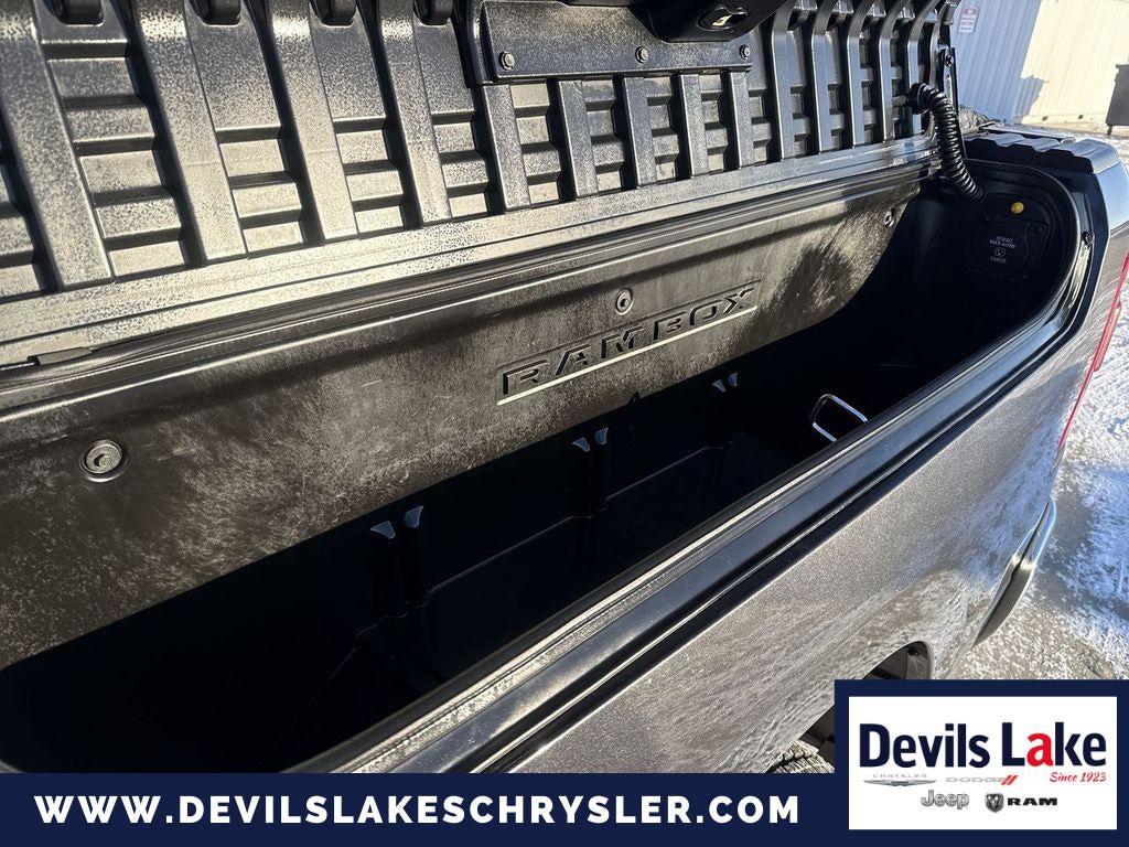 Laramie Level 1 Equipment Group: Google Android Auto; SiriusXM Radio Service; USB Host Flip; Rear Window Defroster; Blind Spot and Cross Path Detection; Rain Sensitive Windshield Wipers; Integrated Center Stack Radio; ParkSense Front/rear Park Assist with Stop; For Details. Visit DriveUconnect.com; For More Info. Call 800-643-2112; Rear Power Sliding Window; Integrated Voice Command with Bluetooth®; Connectivity - US/Canada; 12" Touchscreen Display; GPS Navigation; 4G LTE Wi-Fi Hot Spot; GPS Antenna Input; SiriusXM with 360L; Global Telematics Box Module; Connected Travel and Traffic Services; Front LED Fog Lamps; LED Reflector Headlamps; Foam Bottle Insert (door Trim Panel); Apple CarPlay; Disassociated Touchscreen Display; HD Radio; Uconnect 5 Navigation with 12.0" Display Radio; Remote Tailgate Release; Auto High Beam Headlamp Control; Electric Shift on Demand Transfer Case; Front Door Accent Lighting; 2nd Row in Floor Storage Bins; Rear Door Accent Lighting. Quick Order Package 27H Laramie. Bed Utility Group. 20" X 9" Premium Paint/polished Wheels. Leather Trimmed Bucket Seats. Multi-Function Tailgate. RamBox Cargo Management System. Wheel to Wheel Side Steps. Anti-Spin Differential Rear Axle. ParkSense Front/rear Park Assist with Stop. 33 Gallon Fuel Tank. Class IV Receiver Hitch. Trailer Brake Control. Granite Crystal Met CC. Rear Wheelhouse Liners. MOPAR Front and Rear Rubber Floor Mats. **Equipment listed is based on original vehicle build and subject to change. Please confirm the accuracy of the included equipment by calling the dealer prior to purchase.**