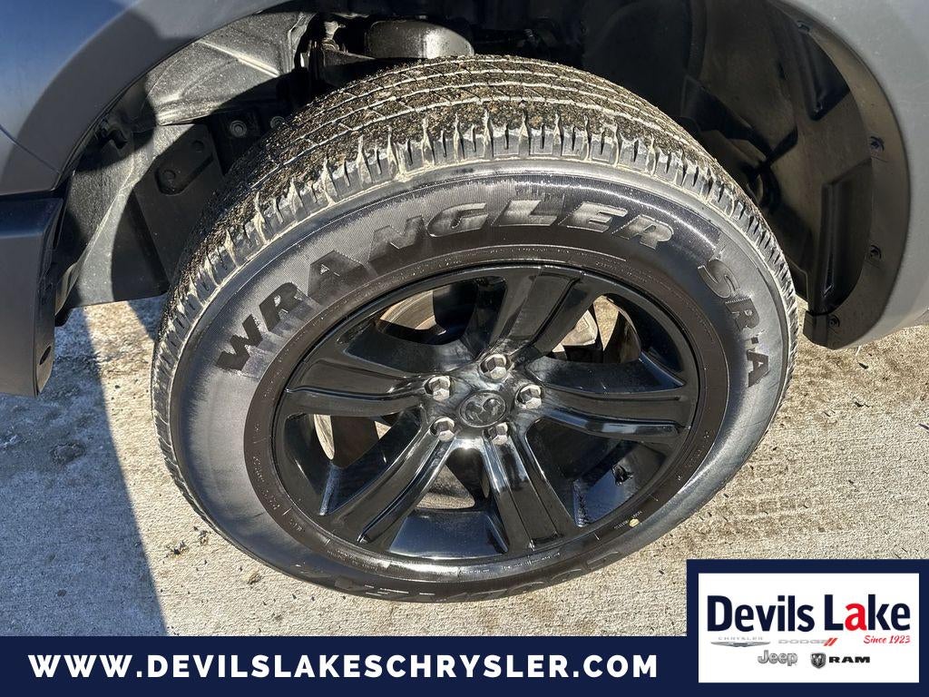 Quick Order Package 29F Warlock: Black Powder Coated Rear Bumper; Black RAM Head Tailgate Badge; 4x4 Flat Black Badge; B-Pillar Black Out; Semi-Gloss Black Hub; Bi-Function Halogen Projector Headlamps; Raised Ride Height; P275/60R20 BSW AS Tires; Rear Extra Heavy Duty Shock Absorbers; Sport Tail Lamps; Black Exterior Truck Badging; Black Powder Coated Front Bumper; Warlock; Black Grille with RAM Lettering; Black Headlamp Filler Panel; Front Wheel Well Liners; Warlock Interior Accents; ParkSense Rear Park Assist System; Goodyear Brand Tires; Black Wheel Flares; 20" X 9" High Gloss Black Aluminum Wheels. Granite Crystal Met CC. **Equipment listed is based on original vehicle build and subject to change. Please confirm the accuracy of the included equipment by calling the dealer prior to purchase.**