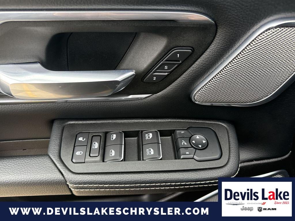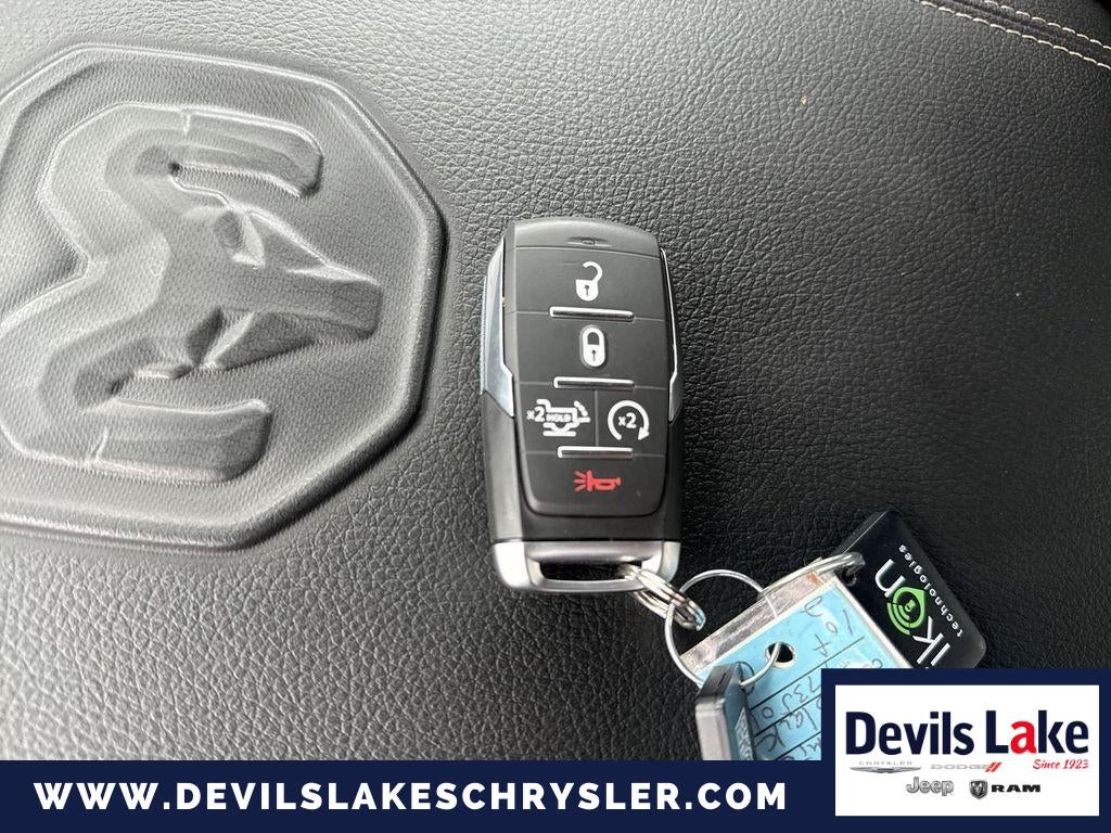 Laramie Level 2 Equipment Group. Quick Order Package 21H Laramie. Night Edition. 22" X 9" Forged Aluminum Wheels. Leather Trimmed Bucket Seats. MOPAR Black Tubular Side Steps. Anti-Spin Differential Rear Axle. Trailer Brake Control. Diamond Black Crystal PC. **Equipment listed is based on original vehicle build and subject to change. Please confirm the accuracy of the included equipment by calling the dealer prior to purchase.**