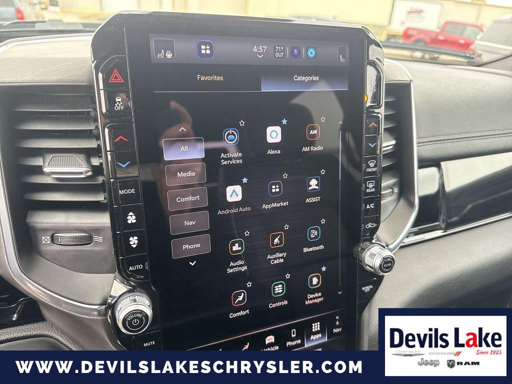 You'll never again be lost in a crowded city or a country region with the navigation system on this Ram 1500. This vehicle is a certified CARFAX 1-owner. Our dealership has already run the CARFAX report and it is clean. A clean CARFAX is a great asset for resale value in the future. The vehicle comes equipped with Android Auto for seamless smartphone integration on the road. This model's Lane Departure Warning keeps you safe by alerting you when you drift from your lane. Never get into a cold vehicle again with the remote start feature on this 2025 Ram 1500 . This 2025 Ram 1500 features a hands-free Bluetooth® phone system. This model has auto-adjust speed for safe following. This Ram 1500's Forward Collision Warning feature alerts drivers to potential front-end collisions. It offers Apple CarPlay for seamless connectivity. See what's behind you with the back up camera on this 1/2 ton pickup.